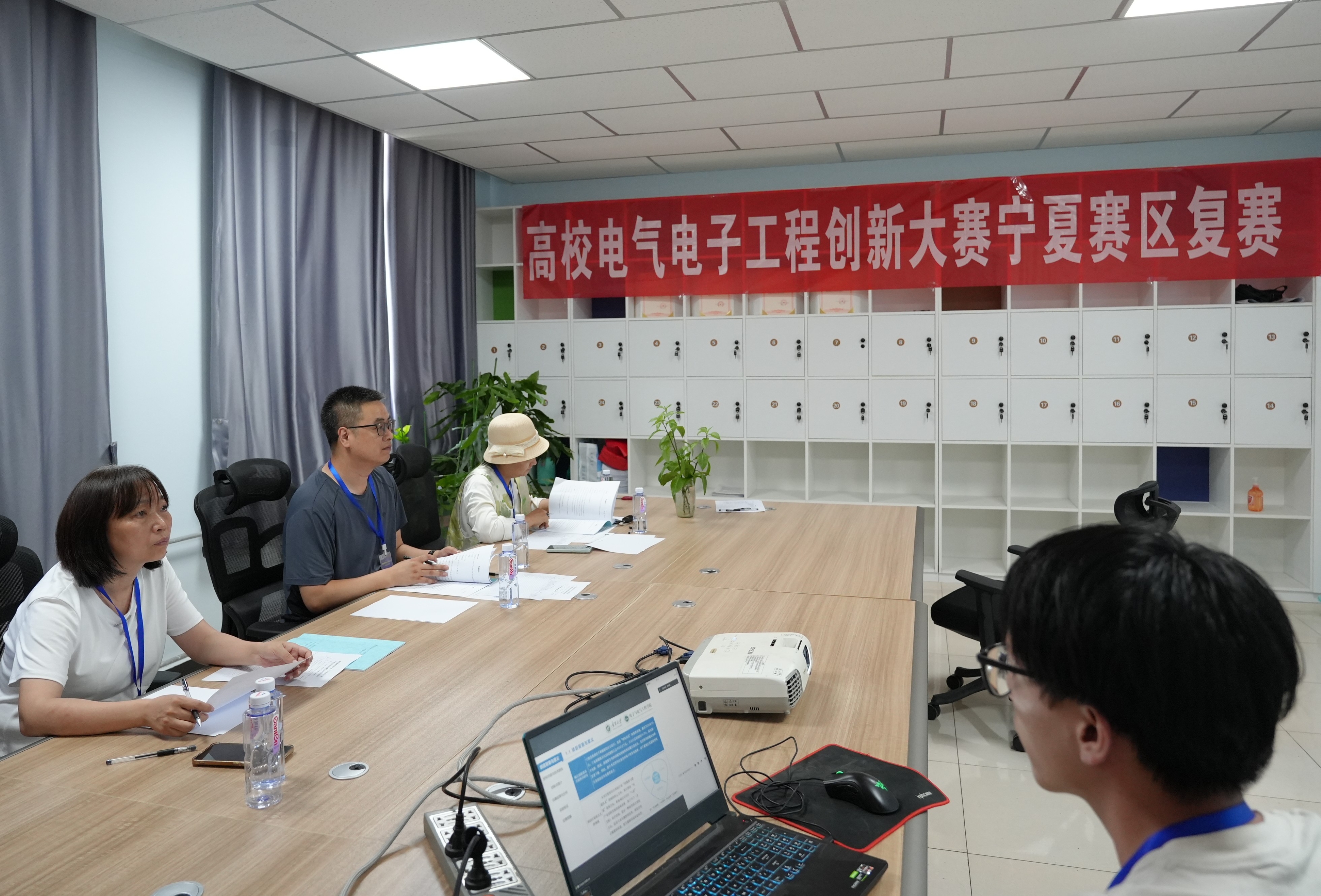 【电院讯 杨国华/文、图】为推动电气电子领域教育与工程实践深度融合,培育创新型人才,7月10日,由中国电工技术学会主办、宁夏大学承办、北方民族大学协办的第四届高校电气电子工程创新大赛(宁夏赛区)复赛在我院圆满落幕。来自区内宁夏大学、北方民族大学、宁夏师范大学、宁夏理工学院、银川科技学院、银川能源学院6所高校的45支优秀队伍通过“线上+线下”相结合的方式,同场竞技,一展风采。
