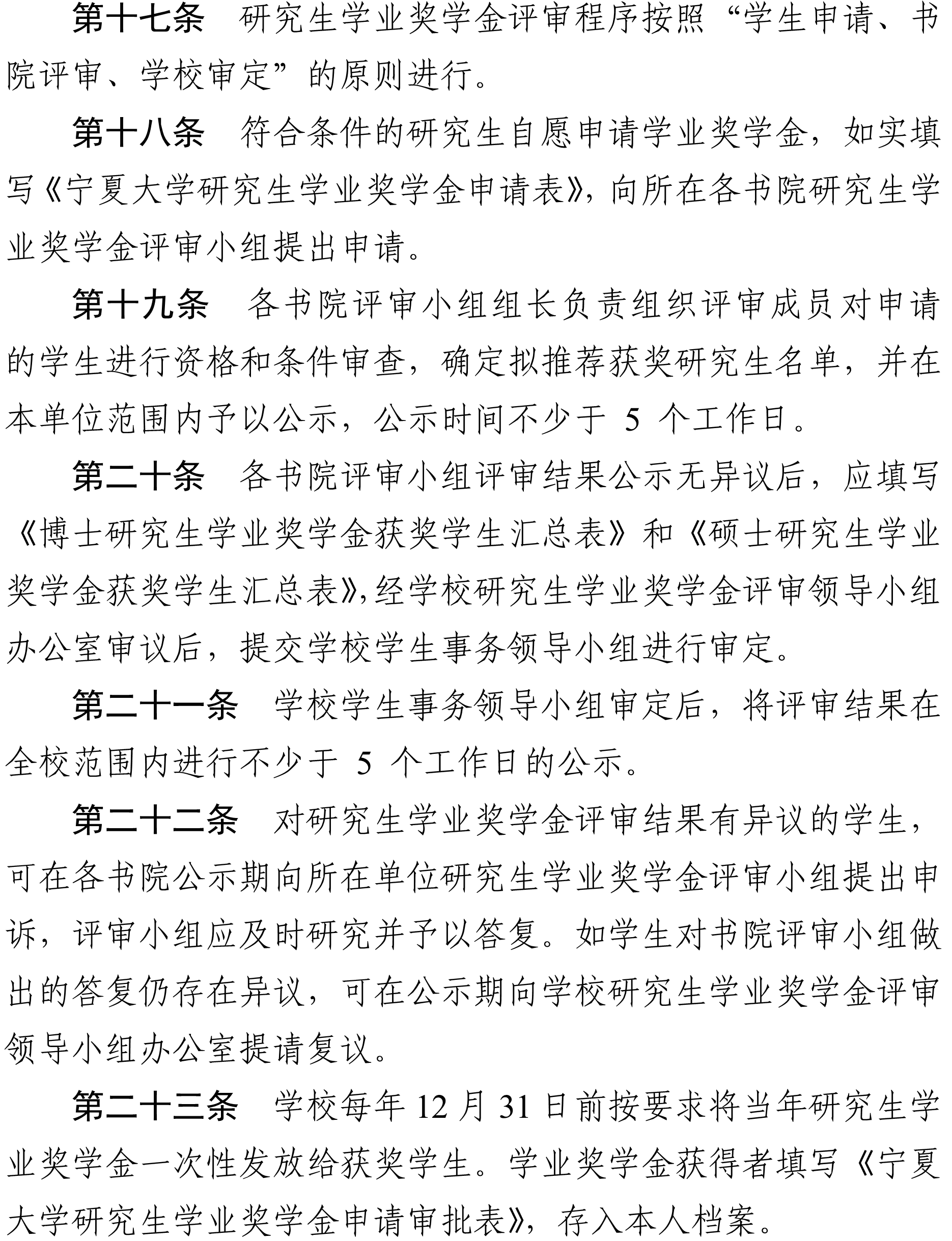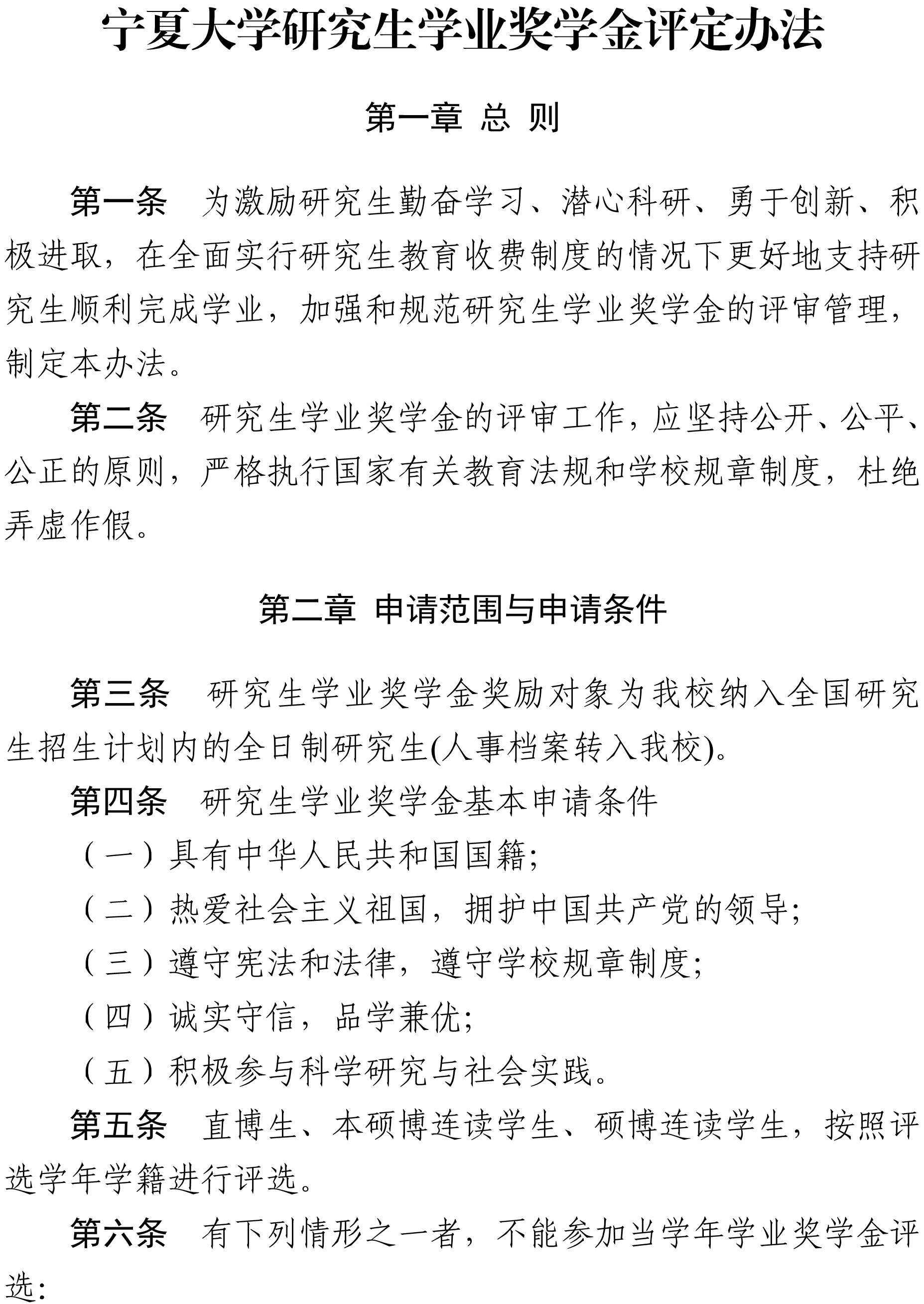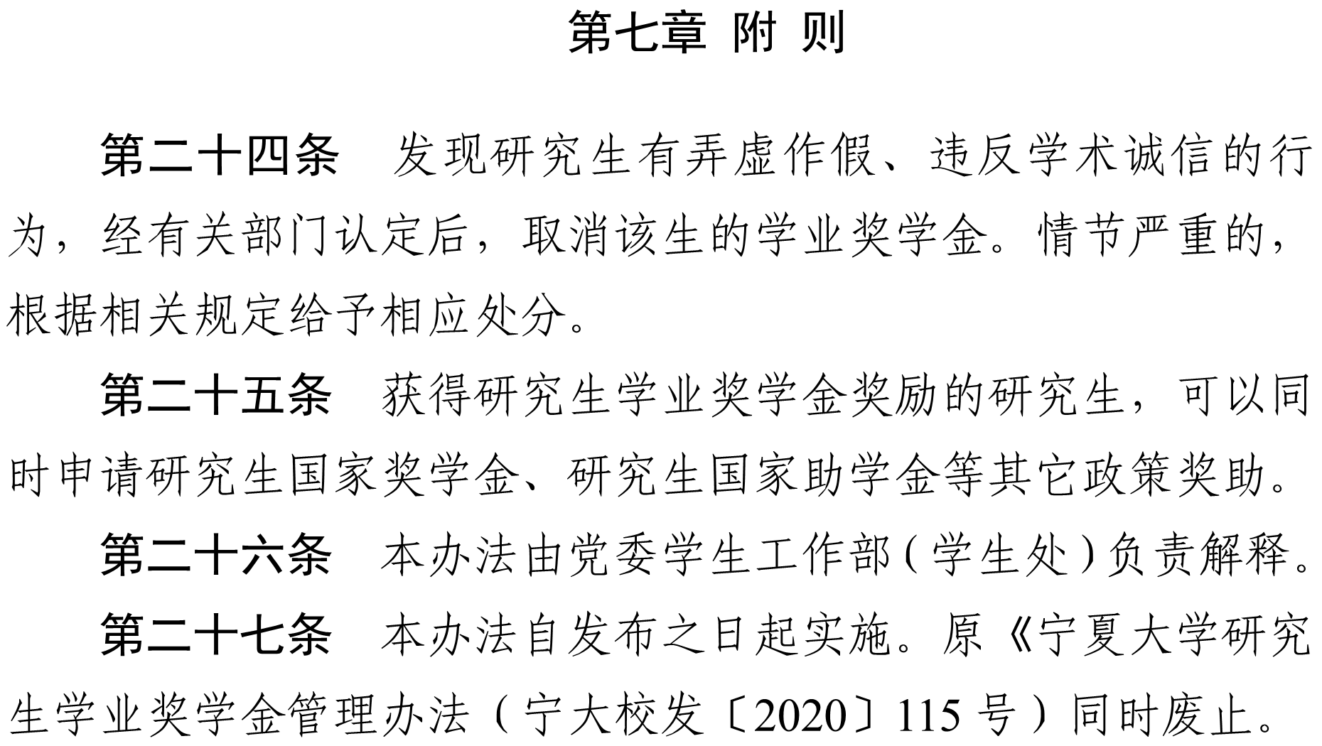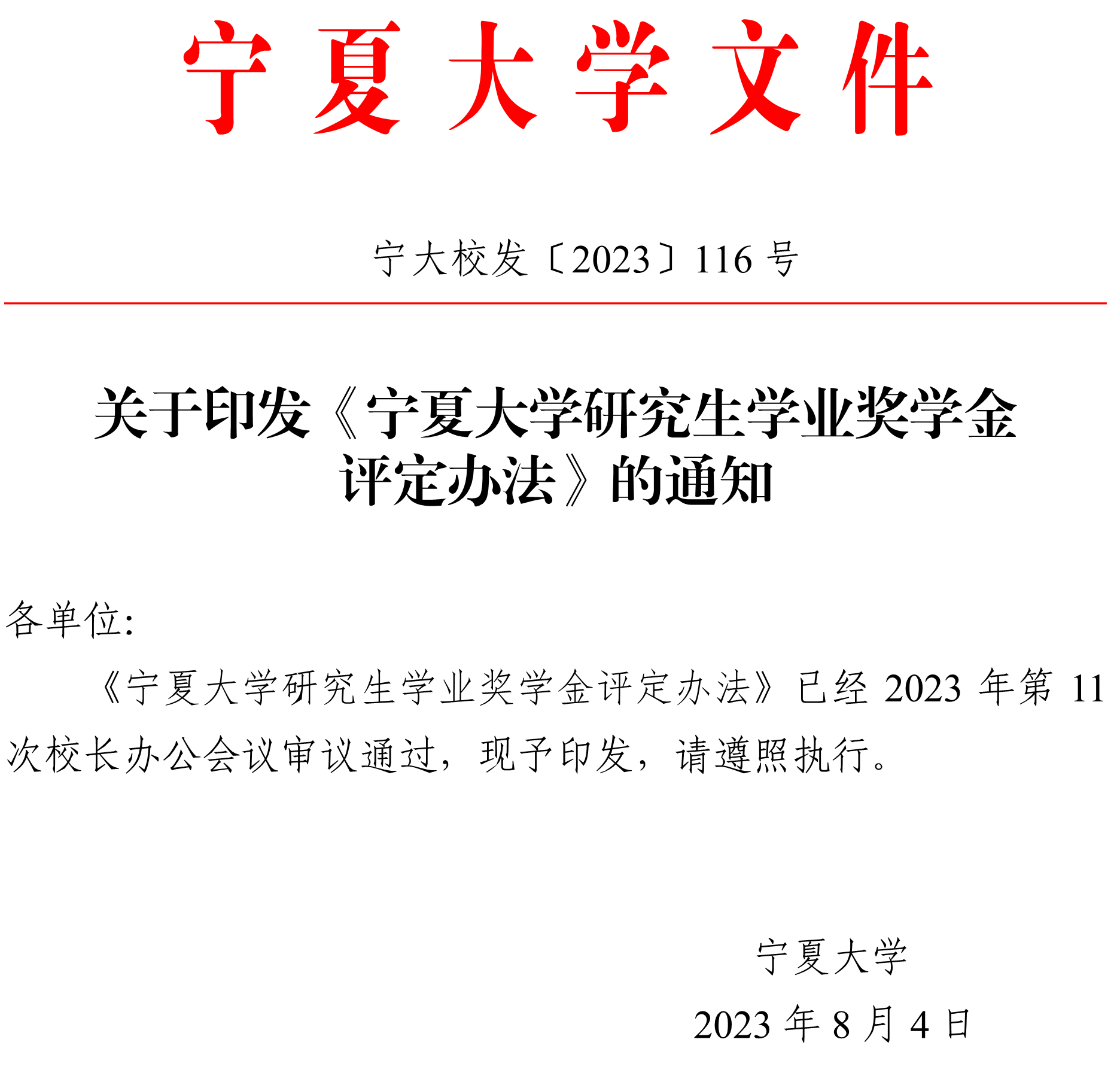 宁夏大学研究生学业奖学金评定办法(宁大校发〔2023〕116号)