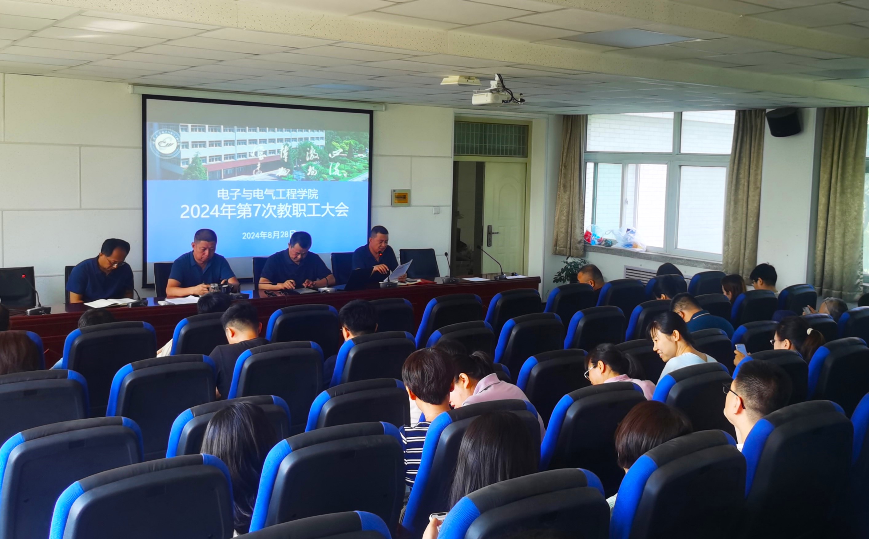 【电院讯 韩腾/文、图】为深入贯彻落实党的二十届三中全会精神,引领全院教职工更快更好融入新学年新学期各项教育教学和科研工作,8月28日,我院于怀远校区博远楼召开第七次全院教职工大会,安排部署2024年秋季学期工作。