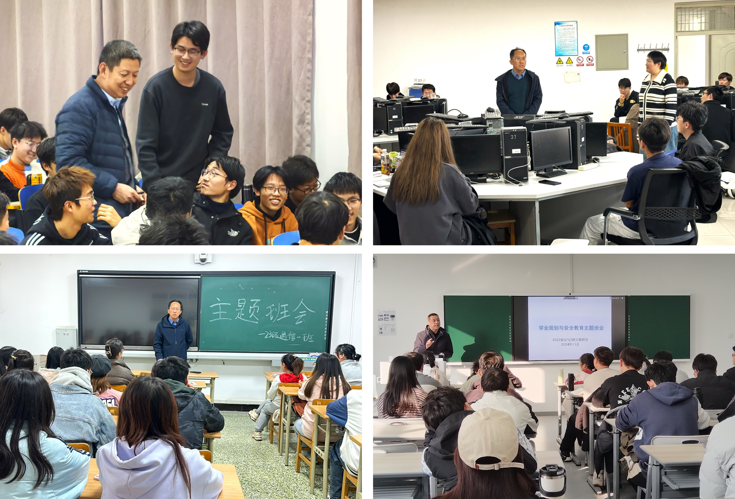 【电院讯】为落实立德树人根本任务,切实履行办学治校、育人育才、维护稳定的政治责任和领导责任,学院院领导分别走进联系班级参加主题班会,深入了解学生学习和生活实际,认真倾听学生关切的突出问题,与学生面对面听心声解生忧话成长,开展民族团结进步教育,引导同学们铸牢中华民族共同体意识。