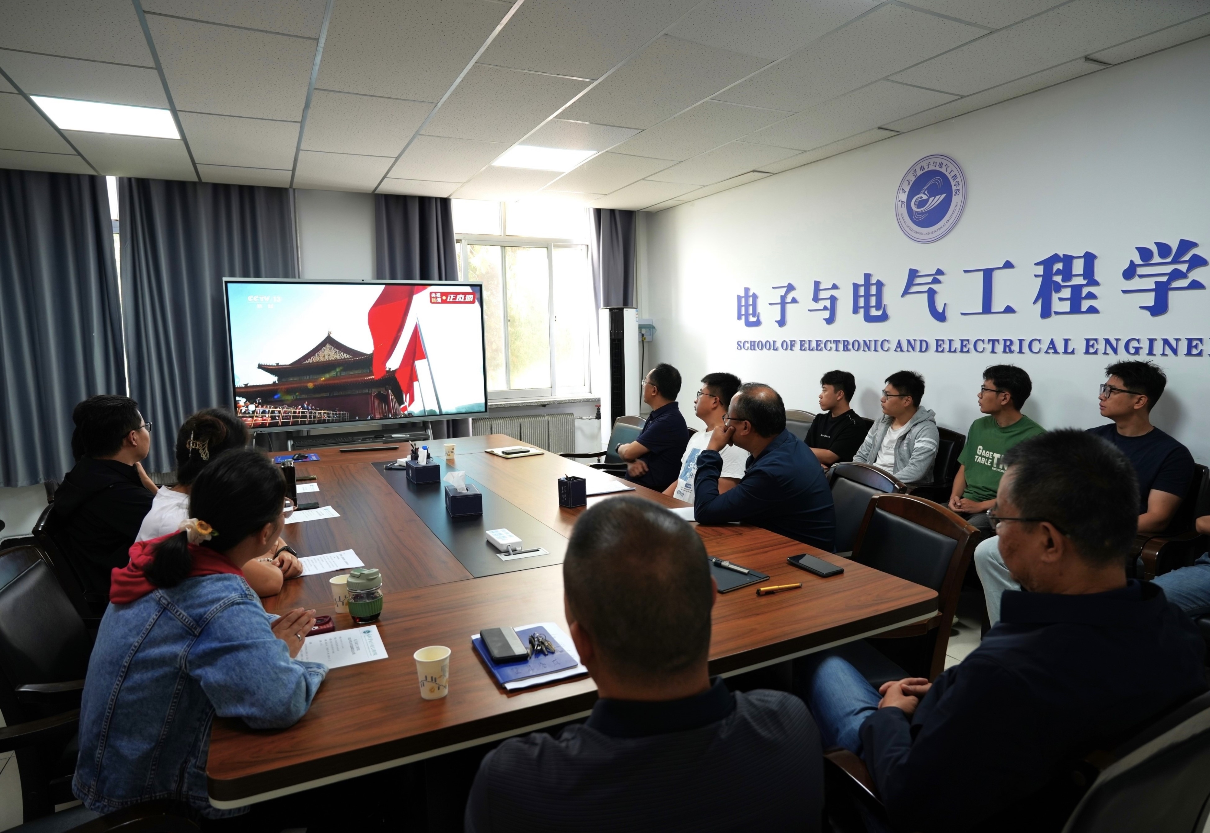 观看过程中,师生们难掩激动之情,不时交流体会。研究生们纷纷表示:“参阅装备的高水平信息化令人振奋。作为电院学子,我们要将专业知识与国家需求紧密结合,为科技强国建设贡献青春力量。”教师们认为,这次活动不仅是一堂生动的爱国主义教育课,也是一次深刻的专业教育,进一步坚定了他们培养电子信息、电气工程、通信工程等领域创新人才的使命担当。