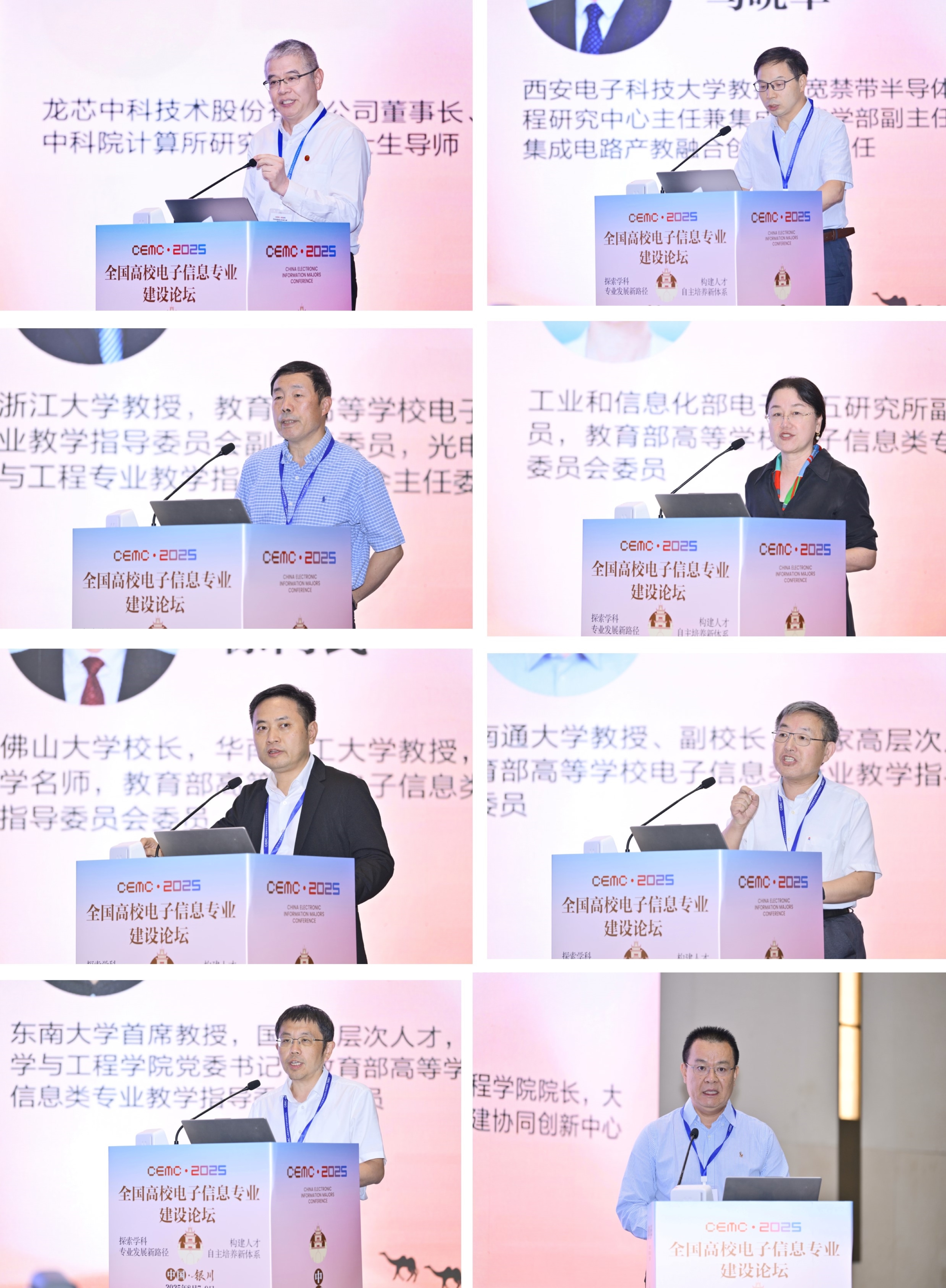 参会专家学者龙芯中科技术股份有限公司董事长、中国科学院计算所胡伟超研究员,西安电子科技大学宽禁带半导体国家工程研究中心兼集成电路学部副主任、国家集成电路产教融合创新平台主任马晓华教授,教育部高等学校电子信息类专业教学指导委员会副主任委员、光电信息科学与工程专业教学指导分委员会主任委员、浙江大学刘旭教授,工业和信息化部电子第五研究所副所长、教育部高等学校电子信息类专业教学指导委员会委员王蕴辉研究员,佛山大学校长、教育部高等学校电子信息类专业教学指导委员会委员徐向民教授,南通大学副校长、教育部高等学校电子信息类专业教学指导委员会委员徐骏教授,教育部高等学校电子信息类专业教学指导委员会委员、东南大学首席教授张在琛,宁夏大学电子与电气工程学院院长、大数据与人工智能教育部省部共建协同创新中心常务副主任孙学宏教授等先后围绕产教融合深化与专业建设创新进行交流发言,探讨电子信息学科与专业协同建设的路径,分享学科资源整合、专业方向优化、跨学科专业建设经验,交流专业标准优化、实践教学体系重构、校企协同育人机制,探索新工科电子信息类人才自主培养模式,推动学科专业一体化布局与发展,提升电子信息领域人才自主培养能力,共同擘画了电子信息类专业建设与人才培养的创新蓝图。