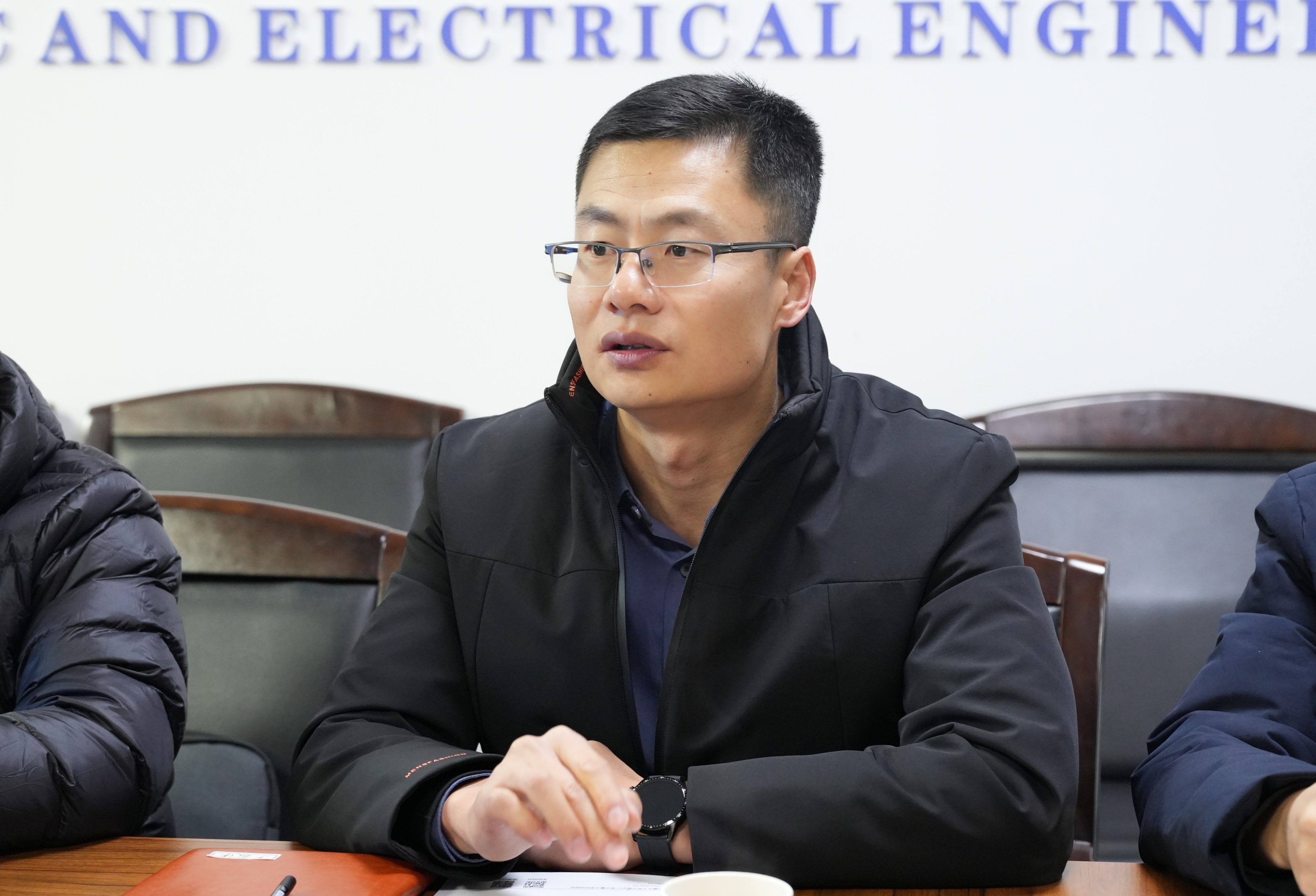 【电院讯 刘洋/文、图】12月12日,自治区发改委信息中心主任马冀平、宁夏通信规划设计院副院长于振洋一行来到我院,在怀远校区德言楼106会议室召开座谈会就“宁夏数字经济的基础、现状、挑战和机遇”开展调研,学院党总支书记何彦平,副院长郭中华、李春树及青年教师代表参加座谈会。会议由院长孙学宏主持。
