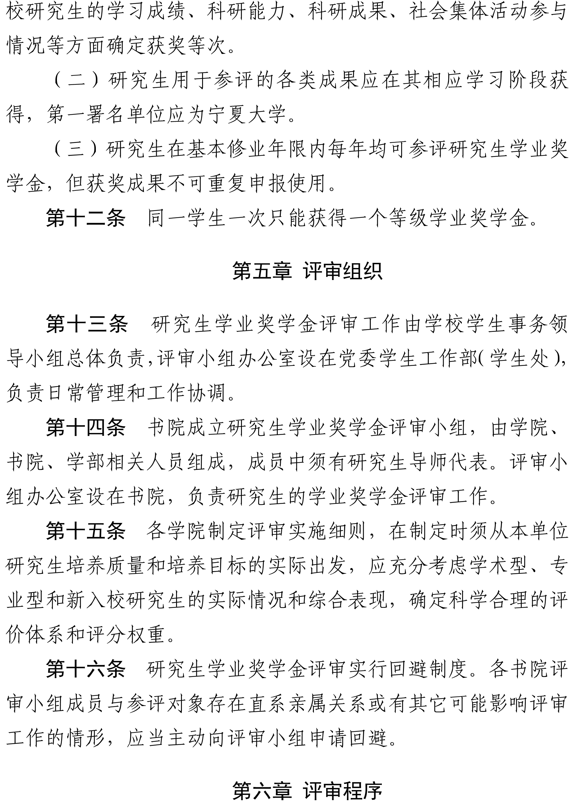 宁夏大学研究生学业奖学金评定办法(宁大校发〔2023〕116号)
