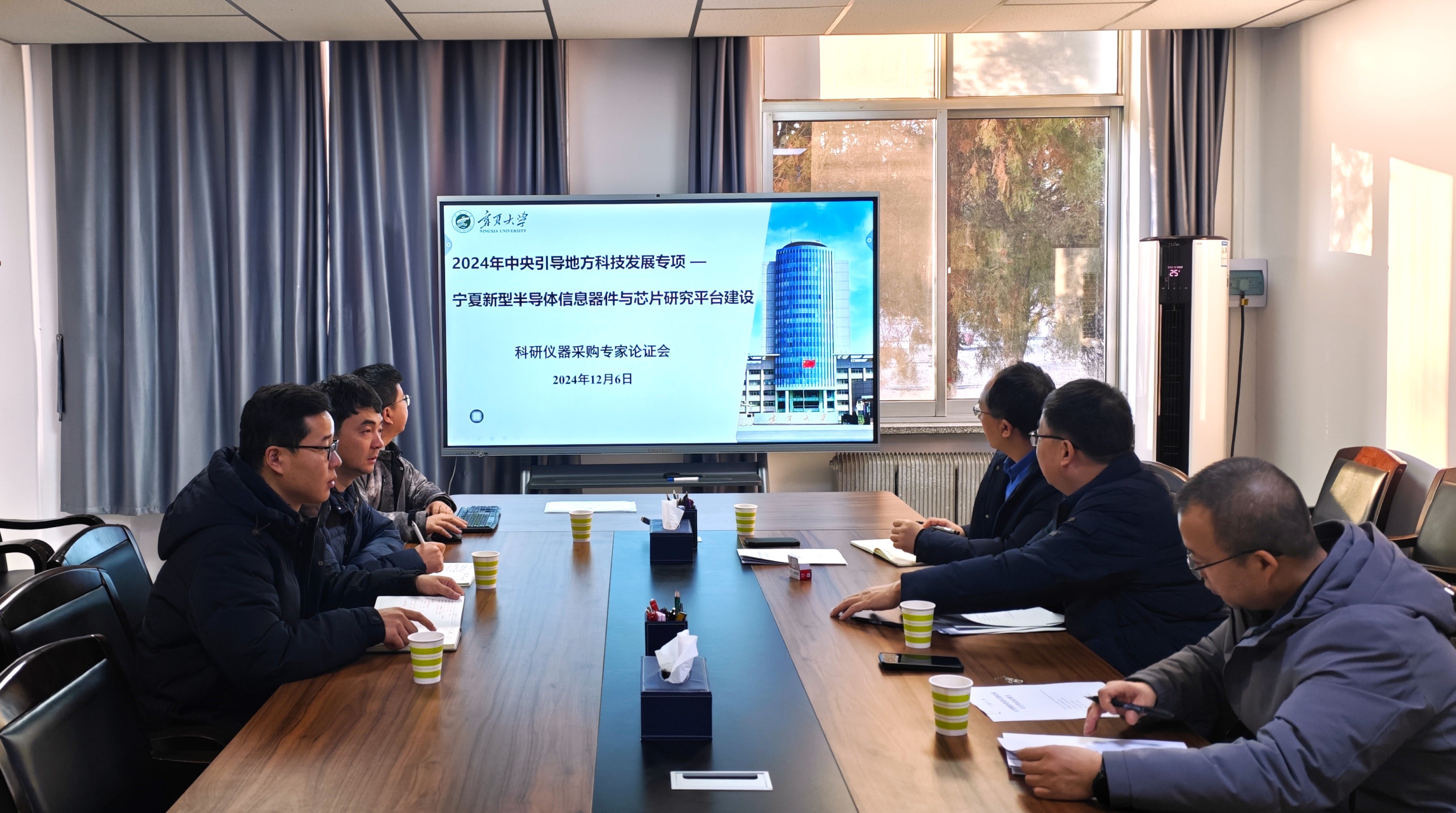 【电院讯 马辽/文、图】12月6日,我院召开2024年中央引导地方科技发展专项——宁夏新型半导体信息器件与芯片研究平台建设项目重点设备采购专家论证会。会议特别邀请北方民族大学专家韦海成教授、王志会教授和宁夏大学校内专家郭中华教授、马占红博士、马辽博士、杨向红博士共同对七台精密贵重仪器的采购可行性进行深入论证。