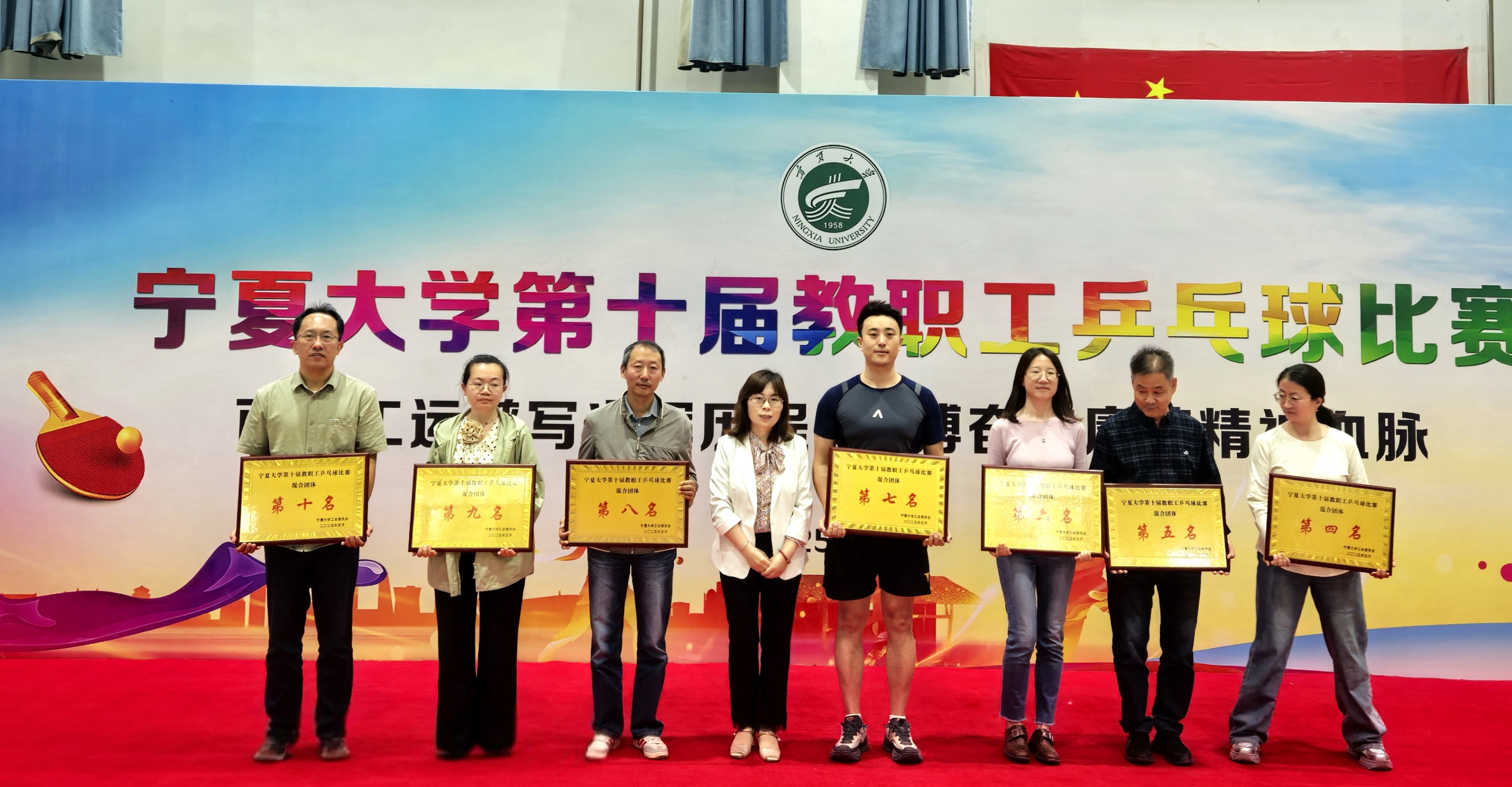 【电院讯 扈洁/文、图】为促进全民健身和教职工身心健康,丰富广大教职工的业余文化生活,增强教职工的向心力和凝聚力,5月14日,宁夏大学“百年工运谱写光辉历程,拼搏奋进赓续精神血脉”第十届教职工乒乓球比赛在怀远校区体育馆落下帷幕,我院和求是书院联队斩获混合团体三等奖,郭中华获得男子单打第六名。
