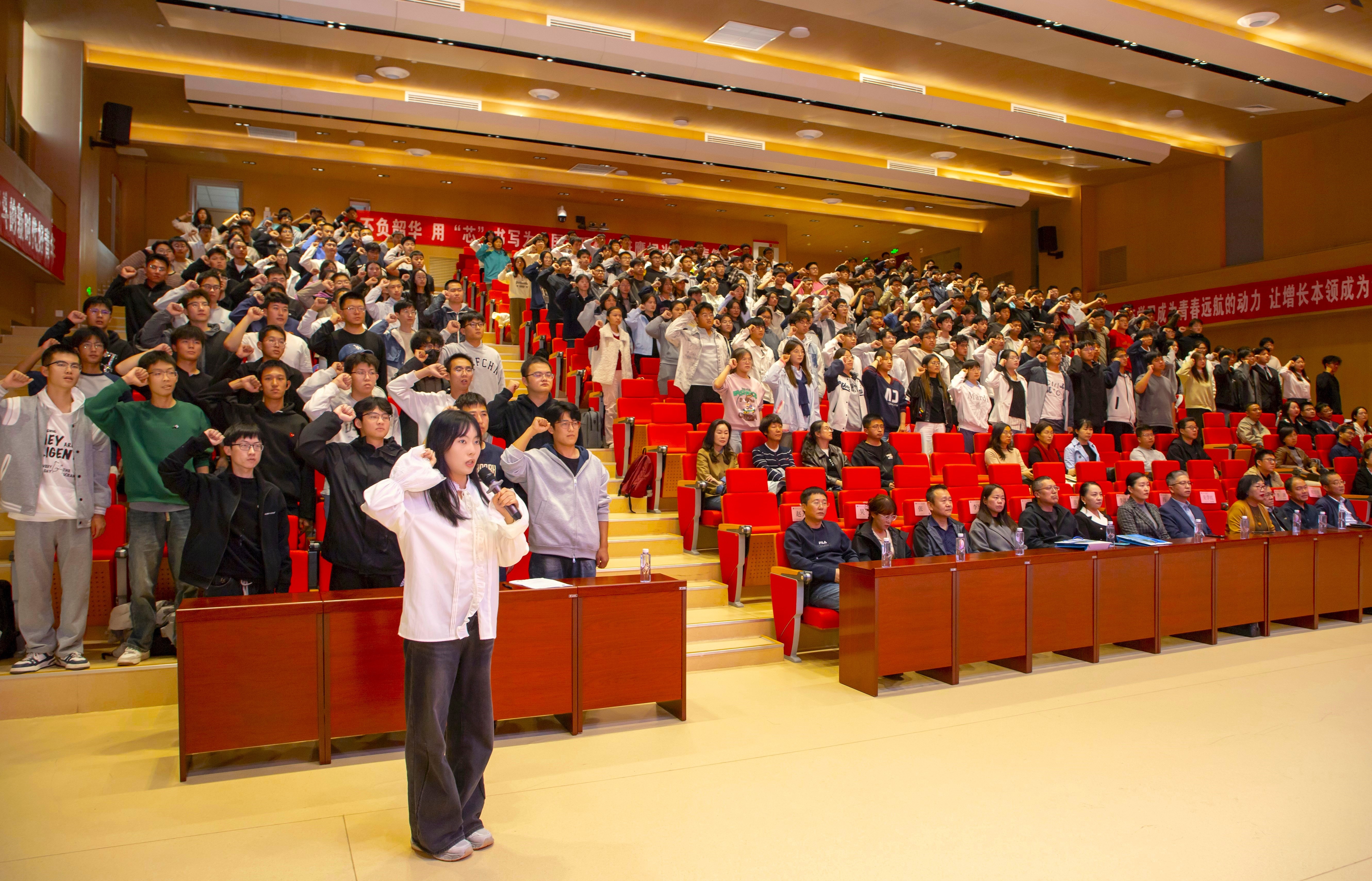 【电院讯 李苗苗/文 陈帅仰、焦浩展/图】秋风送爽,杏坛迎新。10月15日,我院在贺兰山校区笃行楼一楼报告厅举行2025级新生开学典礼暨入学教育报告会。来自全国各地的259名新生齐聚贺兰山麓,以电路为舟、代码为桨,正式开启在电子与电气工程学院的求知新征程。典礼特邀区内外电子、通信、电力等行业企业代表及优秀校友共同见证,会议由学院副院长郭中华主持。