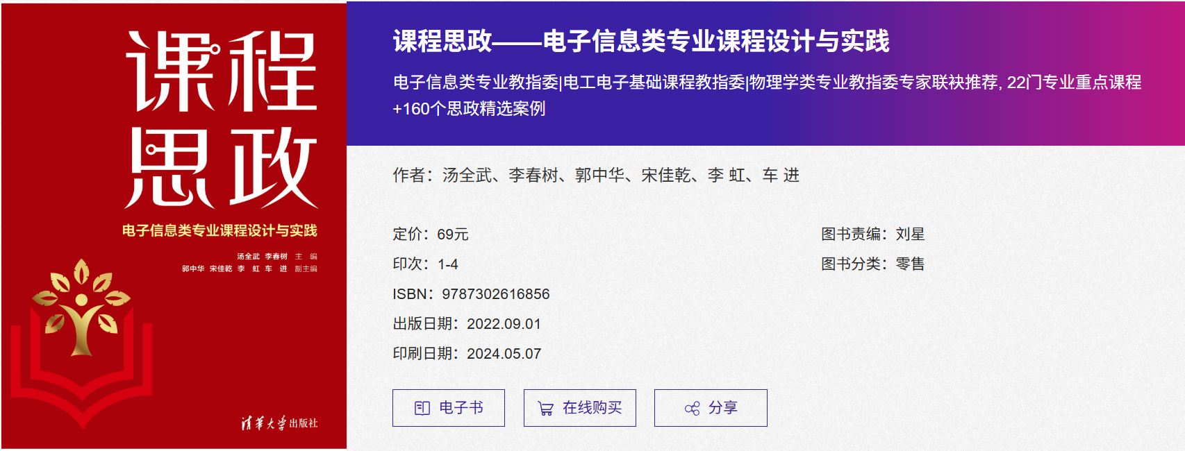 同期,从自治区哲学社会科学评奖领域再传佳讯。汤全武教授团队编著的《课程思政——电子信息类专业课程设计与实践》一书,荣获宁夏第十六届哲学社会科学优秀成果奖。该奖项是自治区哲学社会科学领域的权威奖项,旨在表彰对推动宁夏哲学社会科学繁荣发展具有重要价值的优秀研究成果。著作聚焦立德树人根本任务,系统探索了电子信息类专业课程与思政教育深度融合的理论路径与实践模式,提供了丰富的课程思政教学案例与解决方案,对强化专业课程的育人功能、培养德才兼备的创新型工程人才具有重要的理论价值与实践指导意义。此项获奖,标志着91快活林
