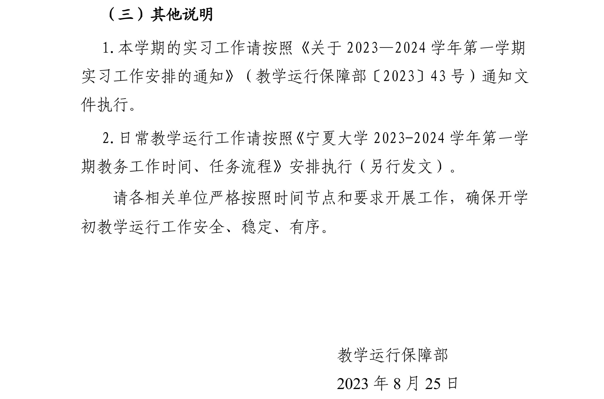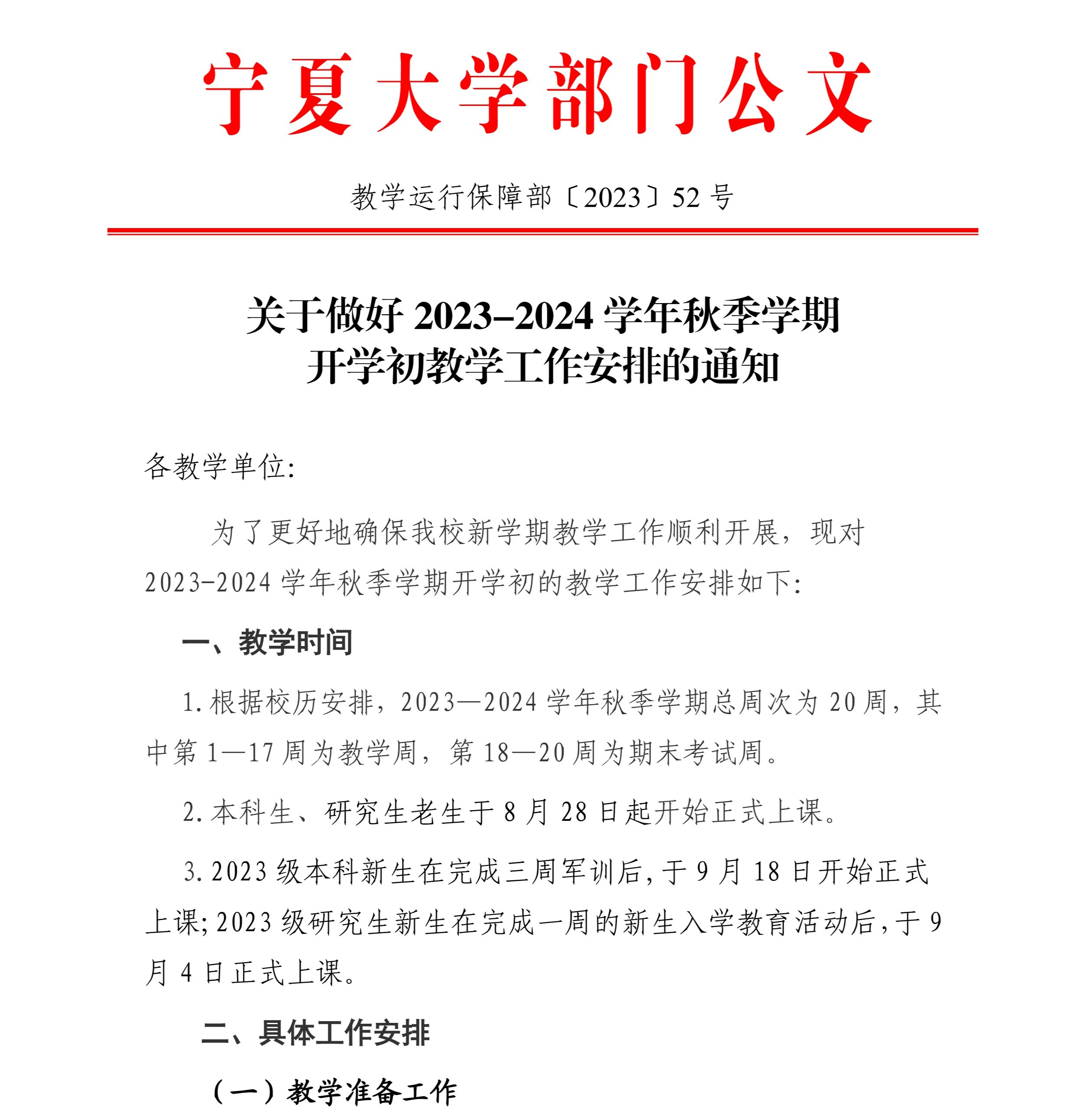 关于做好2023-2024学年秋季学期开学初教学工作安排的通知