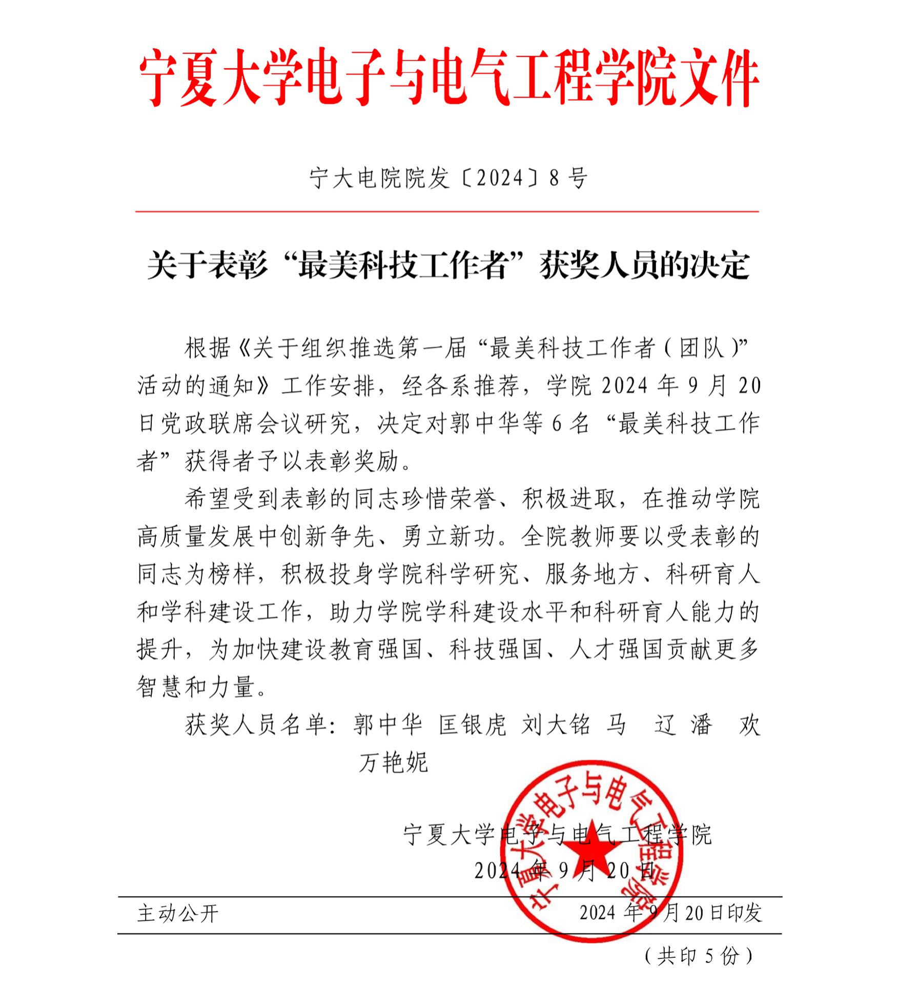 关于表彰“最美科技工作者”获奖人员的决定