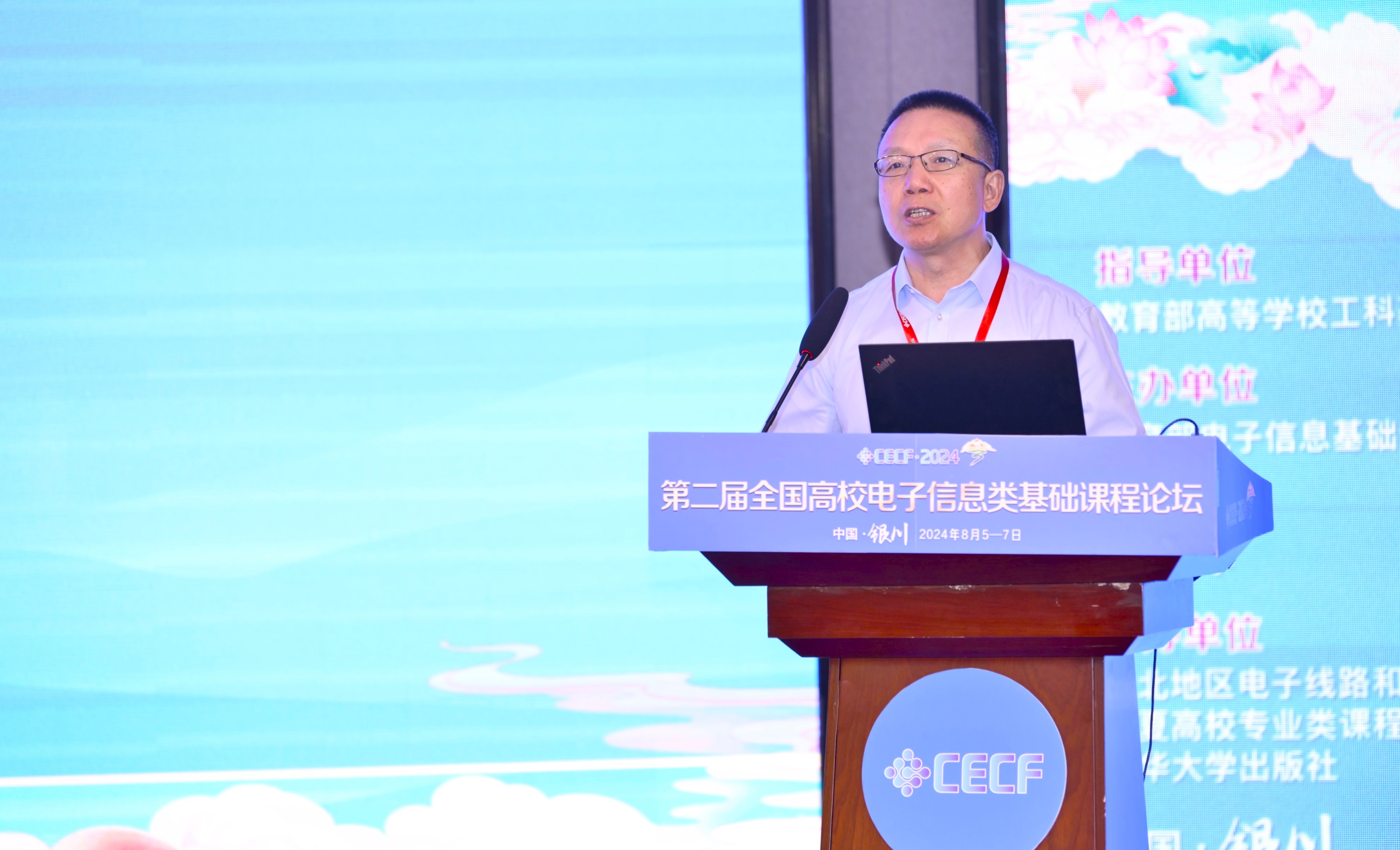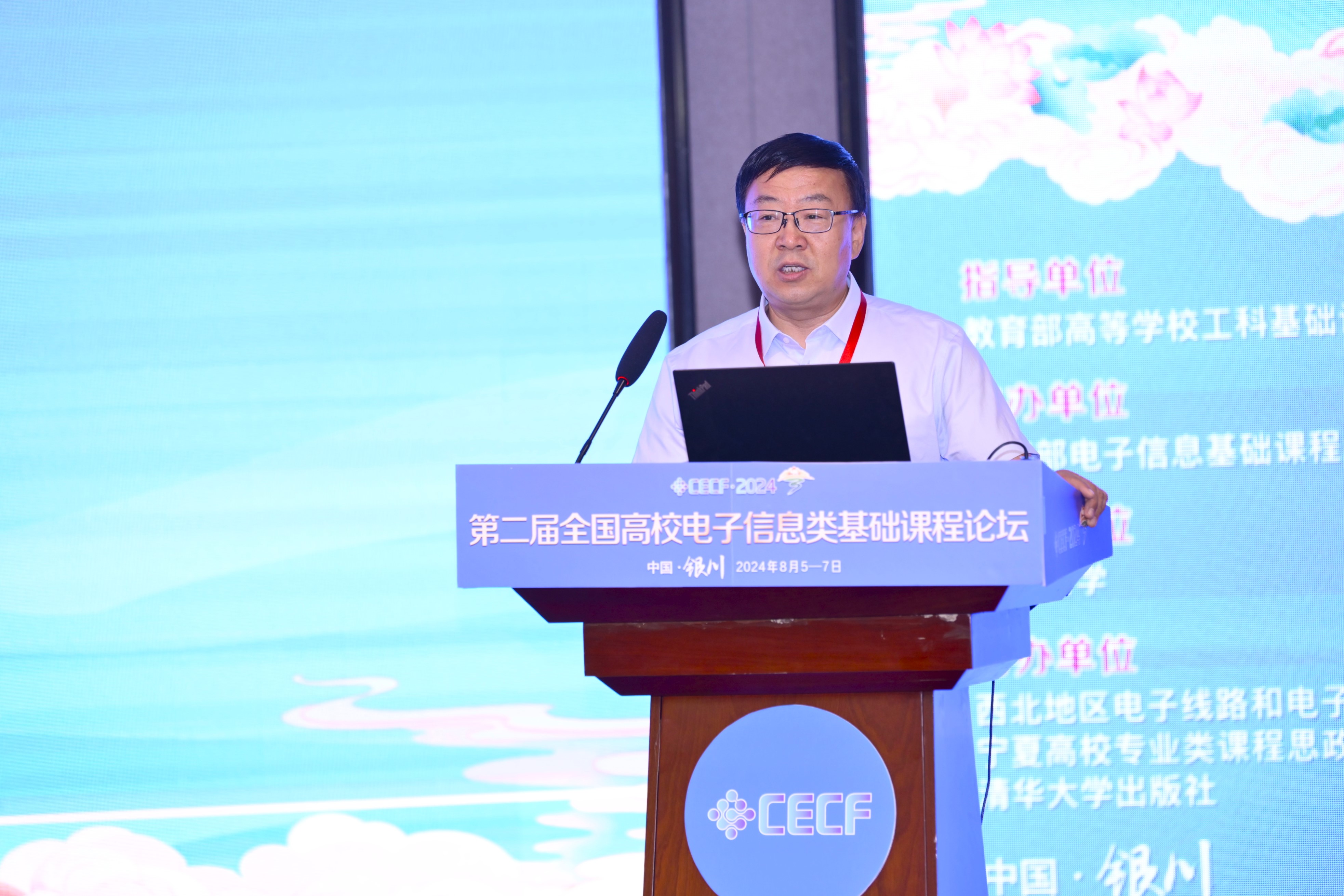 【电院讯 陈鹏/文、图】8月5日至7日,由教育部高等学校工科基础课程教学指导委员会指导,教育部电子信息基础课程虚拟教研室主办,宁夏大学承办,西北地区电子线路和电子技术教学改革研究会、宁夏高校专业类课程思政教材研究基地、清华大学出版社协办的第二届全国高校电子信息类基础课程论坛在银川举行。