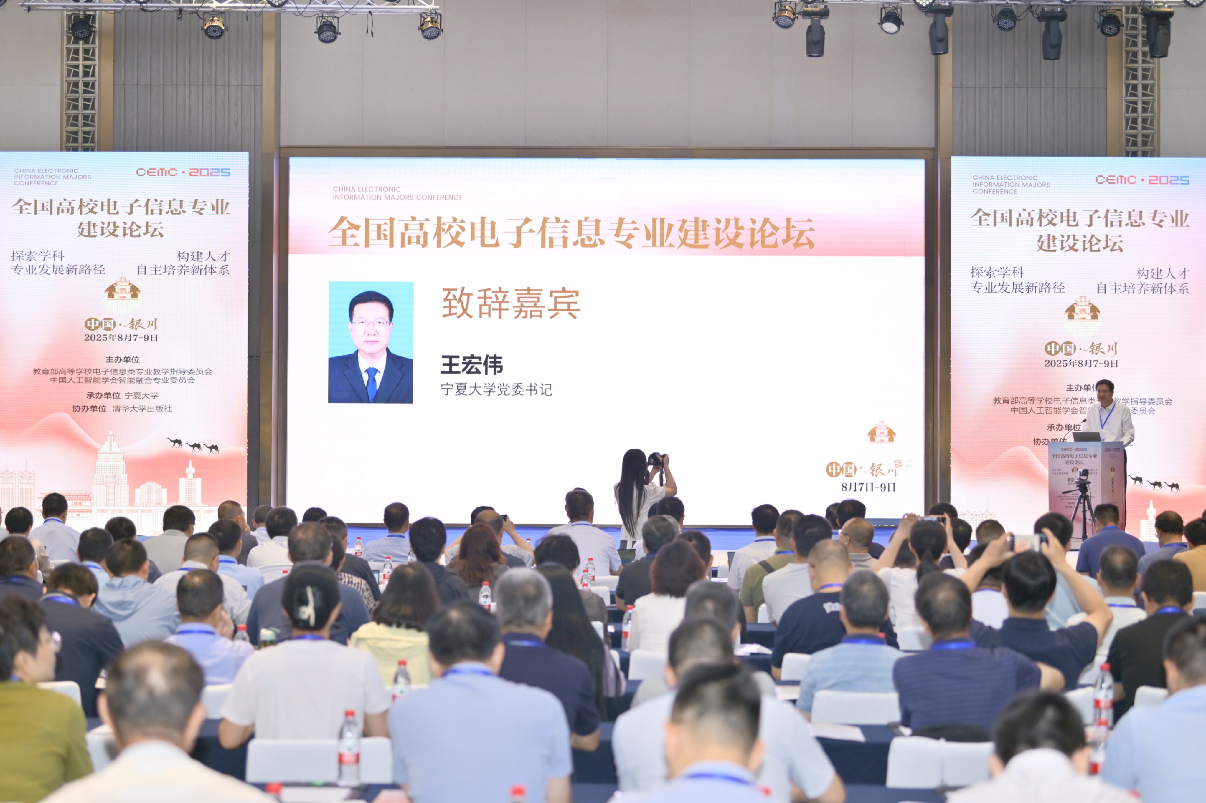 【电院讯 杨向红/文、图】为深入贯彻国家教育强国战略部署,加快构建高质量教育体系,8月7日至9日,由教育部高等学校电子信息类专业教学指导委员会与中国人工智能学会智能融合专业委员会联合主办,宁夏大学承办,清华大学出版社协办的2025全国高校电子信息专业建设论坛在银川隆重召开。
