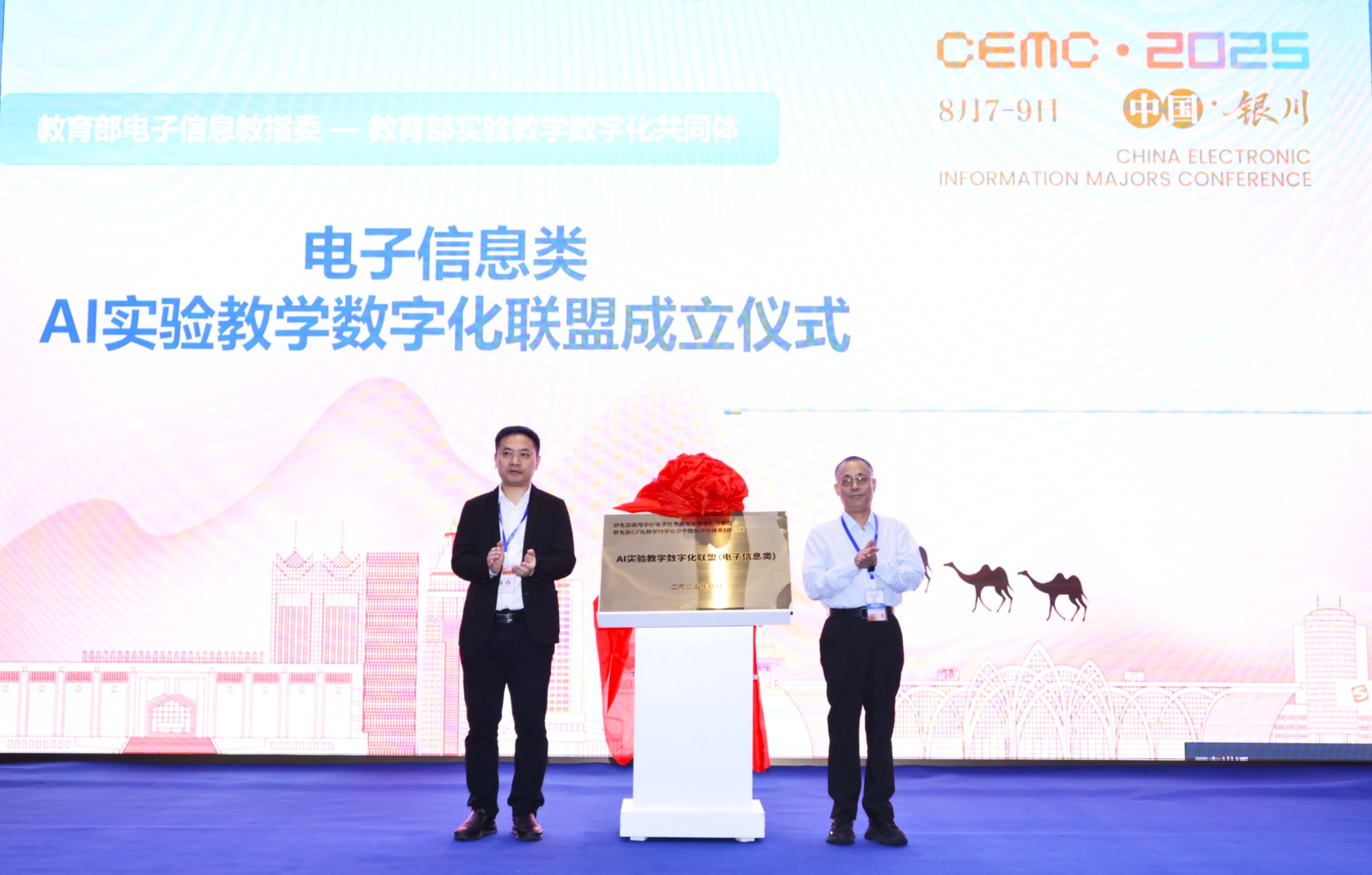 开幕式后,教育部高等学校电子信息类专业教学指导委员会秘书长邓成主持举行了具有里程碑意义的“AI实验教学数字化联盟(电子信息类)”授牌仪式,龙芯中科技术股份有限公司副总裁杜安利发布“教指委-龙芯产教融合新形态教材选题”。