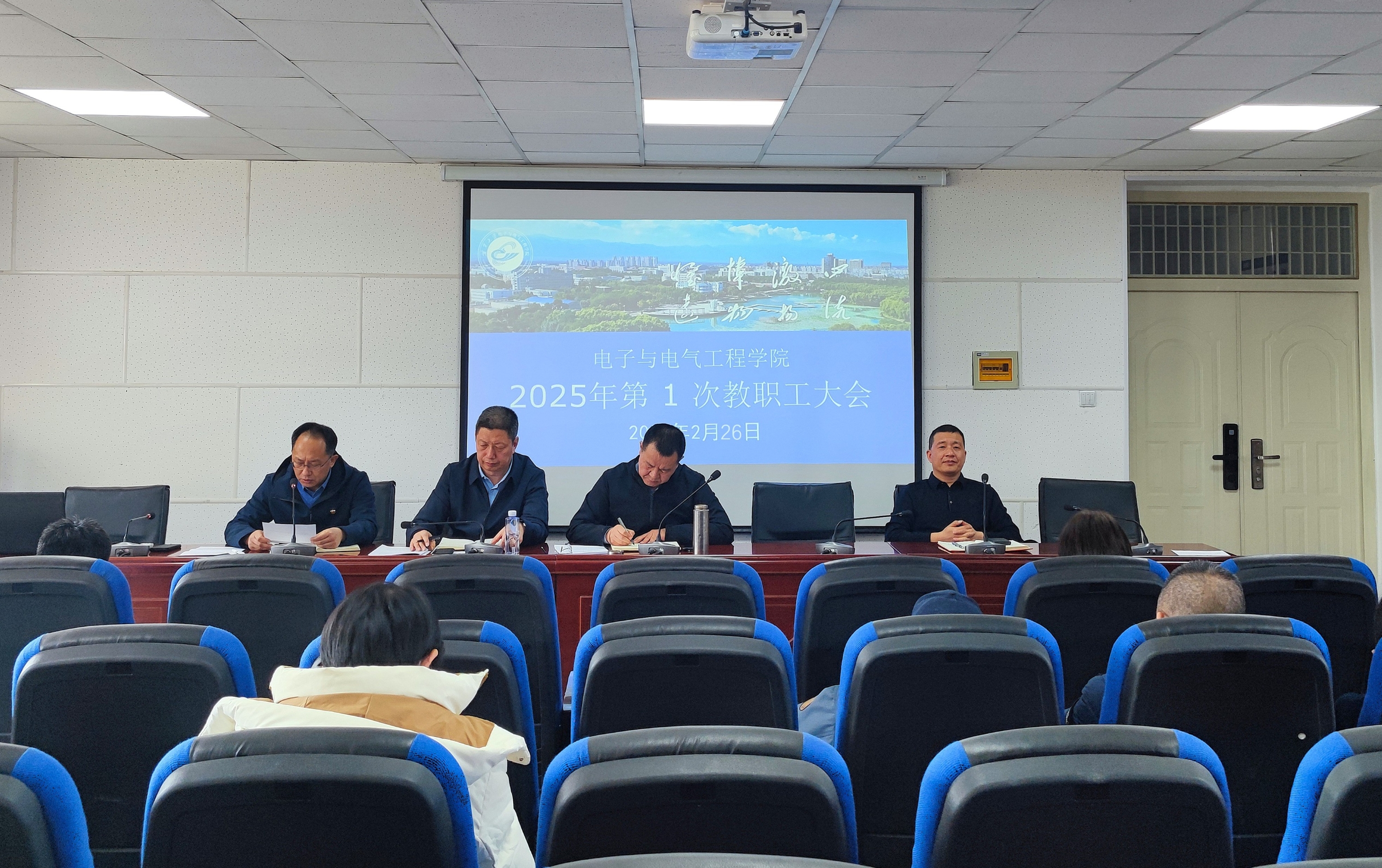 【电院讯 杨向红/文 陈鹏/图】2月26日,我院于怀远校区博远楼221会议室召开2025年第一次全院教职工大会,全面部署新学期重点工作,明确发展目标,谋划学院高质量发展新篇章。会上,学院党总支书记何彦平传达学习...