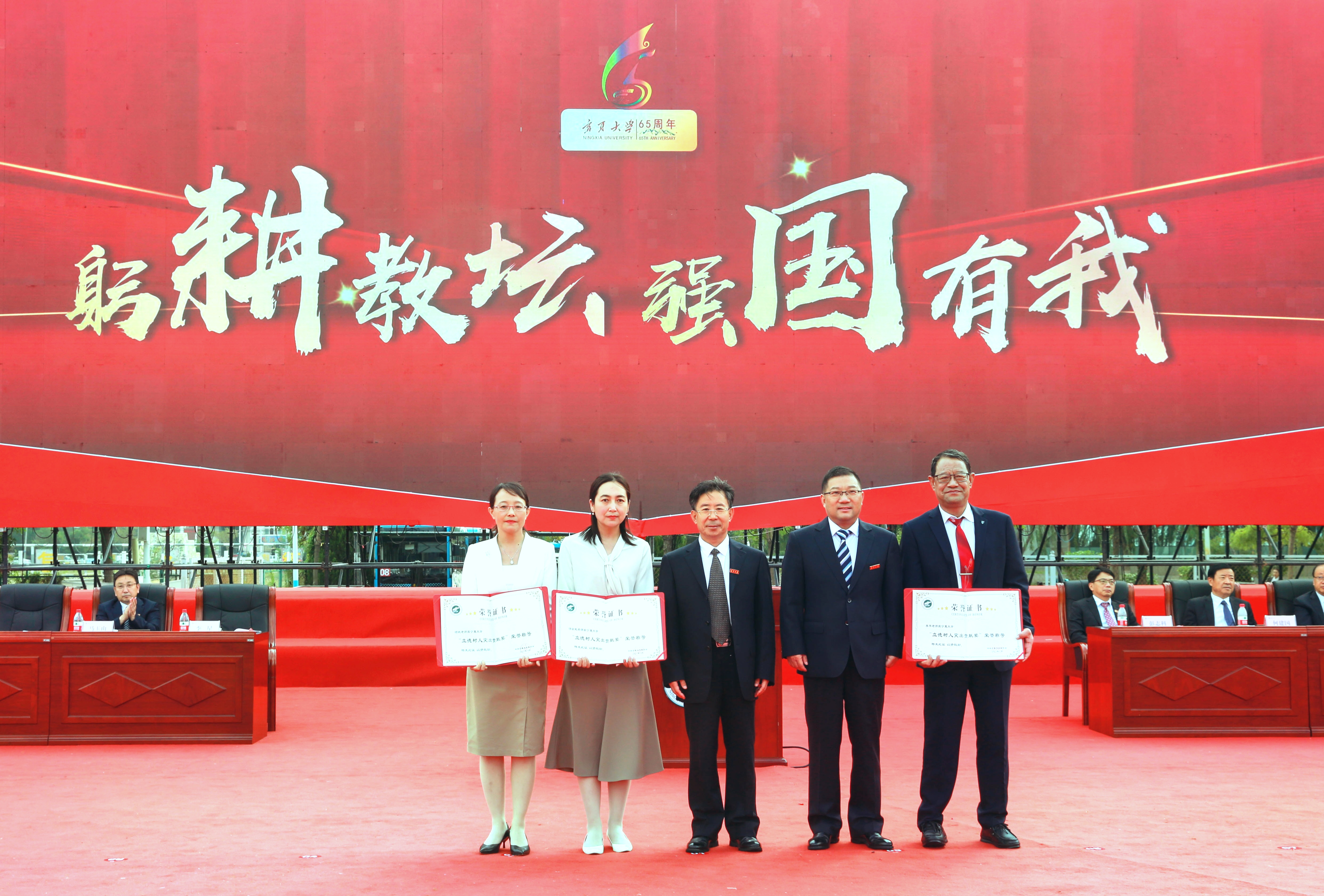 【电院讯 万艳妮/文 雷慧/图】砥砺奋进六十五载,踔厉奋发再启新程。9月15日,宁夏大学建校65周年庆祝大会暨2023级新生开学典礼在文萃校区隆重举行,校领导和与会嘉宾为获得立德树人岗位标兵、立德树人楷模、立德...